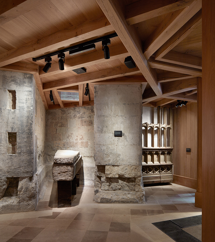 El espacio expositivo recorre el perímetro superior del interior, que anteriormente se podía alcanzar a través de una estrecha escalera situada en una pequeña zona de tierra conocida como la yarda del poeta, que se encuentra entre la Capilla de la Virgen del siglo XVI y la Casa del Capítulo del siglo XIII. La construcción de la escalera dañó el tejido histórico del edificio, por lo cual se decidió crear una nueva ruta de acceso externo.