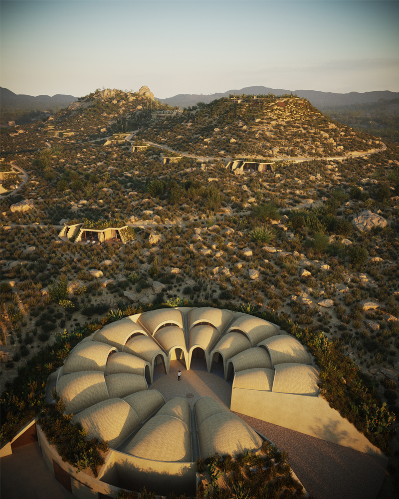 Bajo el nombre de ‘Ummara’, el resort es el resultado de una colaboración Amasa Estudio, también con sede en México, y Rojkind Arquitectos, que se ubicará específicamente en la región vinícola Los Tres Cerritos, y albergará 28 villas en las laderas.