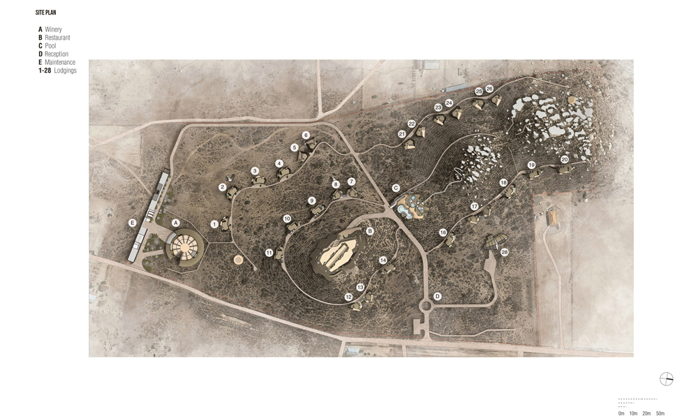 Ésta última, que es considerada como el corazón del proyecto, será un edificio circular formado por 11 formas abovedadas. “A un lado del terreno, con una de las mejores vistas del Valle de Guadalupe, hay un área de alberca que evoca la idea de la tierra convertida en barro como recipiente natural del agua”, explicó la firma.