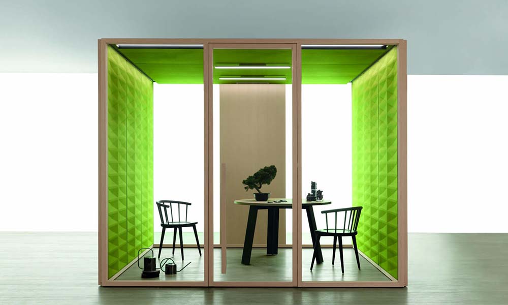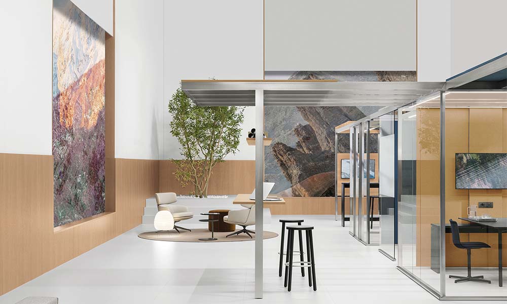 La empresa italiana Citterio propuso una nueva solución para el lugar de trabajo, en respuesta a un panorama de oficinas en constante cambio. CSS Village diseñó un área común abierta que, según el director creativo, Marco Maturo, “alienta a los visitantes a detenerse, mirar alrededor, averiguar más y, por supuesto, trabajar”.